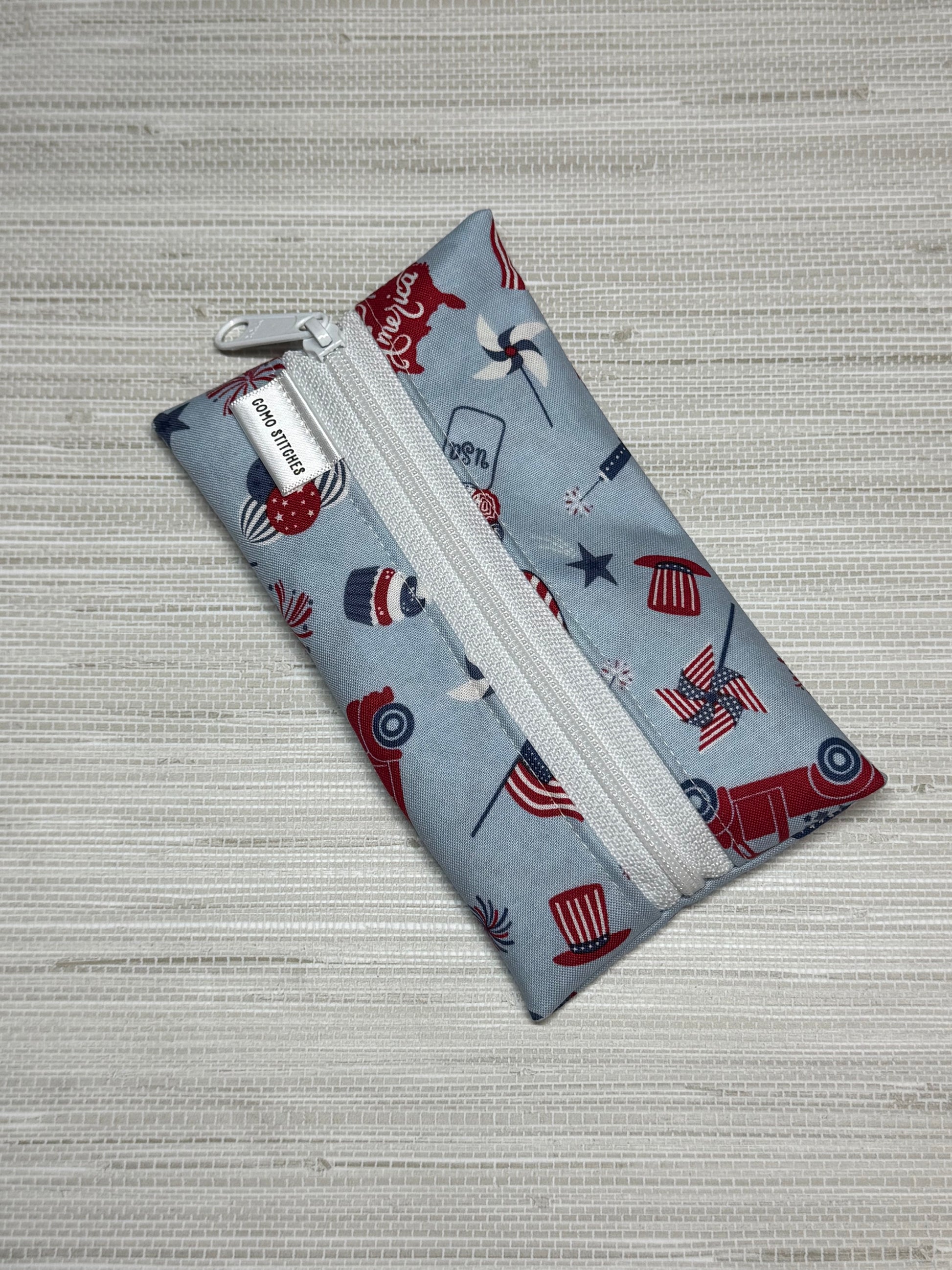 This compact notions bag is handmade from 100% cotton fabric, fully lined for durability, and finished with a smooth zipper closure to keep your items secure. Measuring approximately 3.5 inches tall by 6 inches wide, it’s perfect for holding small embroidery notions, sewing supplies, stitch markers, or other tiny essentials. Lightweight and portable, it fits easily into a larger project bag, purse, or pocket—keeping your tools and treasures neatly organized wherever you go.